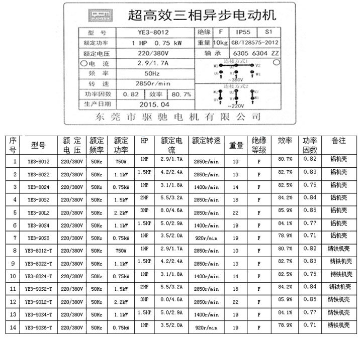 (注:可根据客户求,定制其它电压、频率、功率的电动机)
